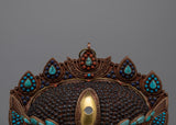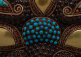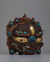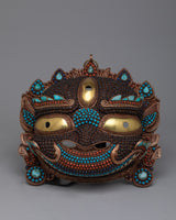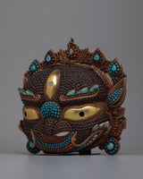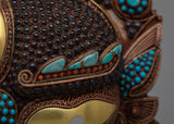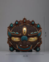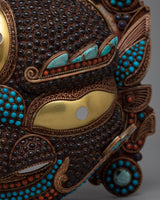 Each intricate detail of this mask is a symphony of colors and textures, with creative inlays of coral, turquoise, lapis lazuli, conch shell, and garnet stones that capture the lively essence of Tibetan culture. Allow yourself to be taken to a dimension where the sacred and sublime meet as you marvel at its intricate patterns and bright hues.