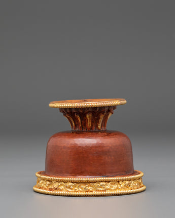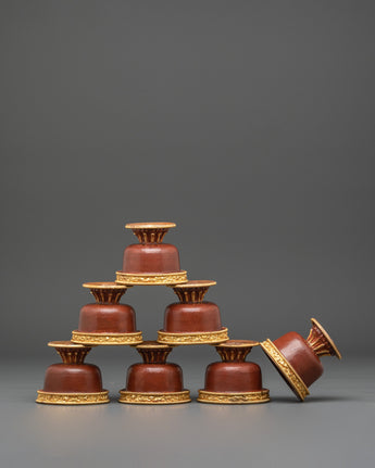 Every bowl in this Buddhist Ritual Offering Bowl Set displays intricate craftsmanship, with detailed floral engravings and radiant gold accents that symbolize divine illumination and spiritual harmony. The copper base enhances warmth and grounding energy, while the golden finish signifies enlightenment and compassion. When filled with water, rice, or flowers, the bowls become powerful vessels of intention, transforming simple offerings into sacred expressions of mindfulness and reverence. The harmonious balance of copper and gold captures the essence of traditional Tibetan aesthetics — elegant, spiritual, and deeply meaningful.