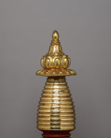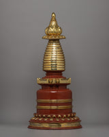 This Stupa is handcrafted with unique details and plated with gold for Nourishment and Restraint in your life.