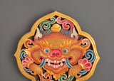 Generations of Himalayan workmanship are reflected in the animal's elaborate design, which is surrounded by vibrant motifs. For safety and prosperity, this Cheppu wall hanging is often hanging in homes or places of adoration, elevating the positive energy in the area. This carved wooden lion wall art is a timeless expression of Tibetan heritage and spiritual strength, whether utilized as an attractive decoration or a spiritual symbol.