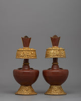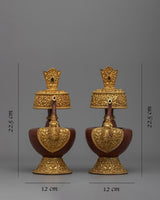 The Tibetan Copper Bhumba Set is a remarkable work of art that combines artistry and spirituality. Each piece in this set is meticulously handcrafted, with a copper body and resplendent 24k gold plating, adding opulence and deep symbolism.