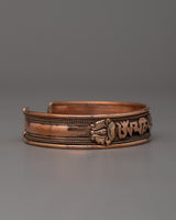 This cuff is more than just a stylish piece of jewelry; it's a wearable representation of inner strength and spirituality. Renowned for its therapeutic qualities, copper encourages energy and harmony; the engraving of the mantra adds a deep level of meaning. When worn by itself or combined with other items, the Tibetan Copper Bracelet Cuff is a timeless representation of spiritual profundity and cultural richness, infusing each moment with the wisdom of Tibetan ancestry.