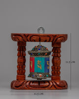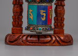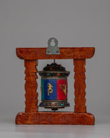 Tibetan Copper Prayer Wheel | Encased in a Wooden Frame for Traditional Elegance