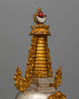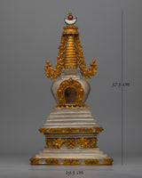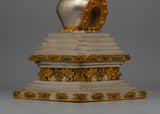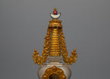 Apart from its remarkable artistry, the statue is embellished with artificial stones like conch and coral that are meticulously inlaid to augment its aesthetic allure and symbolic importance. Traditionally, coral is linked to energy and protection, while the conch represents the voice of the Buddha and the dissemination of his teachings. The deliberate incorporation of these aspects into the design gives the statue additional layers of significance. It establishes a connection between it and the spiritual activities and beliefs of Tibetan Buddhism.