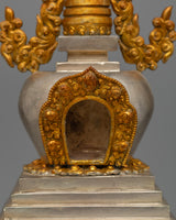 The exquisitely carved Tibetan Copper Statue is a prime example of Tibet's rich artistic and spiritual traditions. This statue is completed with electro-gold and silver plating, adding a brilliant and wealthy look to its well-crafted, long-lasting copper body. The statue, which stands 37.5 cm tall, draws attention and lends a sense of refinement to any area. The combination of copper with gold and silver plating emphasizes the statue's delicate features, elevating it beyond other pieces in any collection.