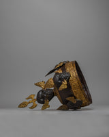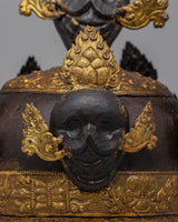 The Tibetan Crown in Iron is a tribute to traditional craftsmanship, delicately created on an iron body with extreme attention to detail. Its distinguishing characteristic is the acrylic painting on the crown, which depicts intricate designs and brilliant colors that represent spiritual significance and cultural heritage.