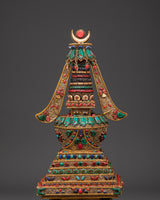 Whether you're creating a sacred space, gifting a spiritual buddy, or increasing your relationship with Tibetan Buddhist heritage, this gold-plated Tibetan pagoda with crystal body and jewel inlays will enhance any room. Its spiritual presence and high-vibration materials appeal to those seeking inner serenity, understanding, and transformation. This sacred object combines beauty and devotion in a classic design, making it an ideal addition to Tibetan altar decor, a powerful tool for crystal healing rituals, and a strong aid for Buddhist meditation.
