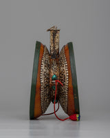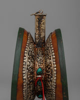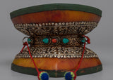 This Tibetan Damaru Drum is a testament to traditional craftsmanship and is ideal for Tibetan Buddhist ritual practitioners, musicians, or collectors. The intricate work on the drum demonstrates the artisans' commitment to preserving cultural art forms, making it an important addition to any collection of spiritual instruments or cultural artifacts.