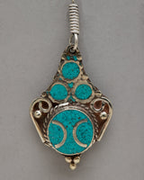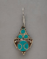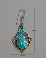 These earrings, which are adorned with synthetic turquoise powder, mimic the vivid colors of real turquoise stones and transport the wearer to the breathtaking scenery of Tibet. These earrings are ideal for both formal and informal settings because of the dangle design, which gives the classic elegance of Tibetan jewelry a modern twist.