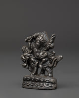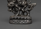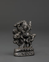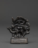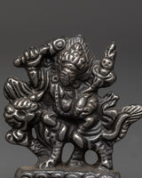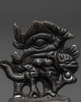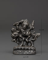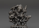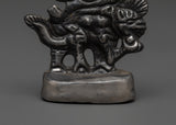Embrace the powerful force of protection and transformation with this Tibetan Deity Mahakala iron sculpture. This miniature statue, 5.5cm tall and 4.5cm wide, is perfectly designed from iron and captures the intense and energetic presence of Mahakala, a beloved protector in Tibetan Buddhism. This statue is a remarkable addition to any altar or meditation space, thanks to its intricate design, which includes the expressive face, ceremonial tools, and mythological mount.
