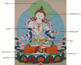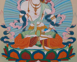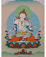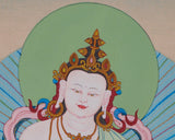 Discover the profound symbolism and spiritual energy of the Tibetan Dorje Sempa Thangka, a revered representation of Vajrasattva, the purification Buddha. It embodies the essence of purification and transformation in Vajrayana Buddhism. Following the traditional Karma Gadri style, it is hand-painted with vibrant acrylic colors and embellished with 24K gold on high-quality cotton canvas.