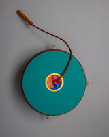 A Chod drum, integral to the Chod spiritual practice in Tibetan Buddhism, is a unique and symbolic instrument. Also known as a damaru, this small, double-sided hand drum has a narrow waist connecting two drumheads. The drum's shape is often likened to the hourglass, embodying the union of wisdom and compassion. Used by Chod practitioners during ritualistic ceremonies, the drum's rhythmic beating is believed to connect with the sacred energies, facilitating meditation and the realization of emptiness. The Chod drum, with its ritualistic role, underscores the synthesis of sound, spirituality, and meditation in Tibetan Buddhist traditions.