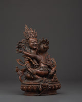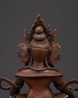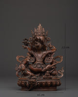 This Tibetan Buddhist statue is a resource for creating positive energy and financial well-being. Whether you set it in your meditation room, living room, or personal shrine, it will provide focus and spiritual enrichment. The statue's oxidized copper finish adds to its beauty and creativity, making it a must-have for any Tibetan art collection.