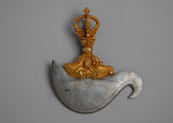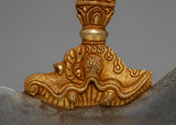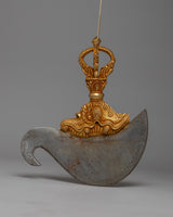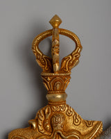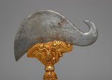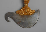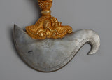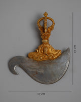 Introducing the Tibetan Flaying Knife, a sacred implement with ritual importance and impeccable craftsmanship. With a copper handle and lavish gold plating, this kartika emanates devotion and spirituality. The crescent-shaped blade, constructed of iron, adds authenticity to the ancient design.