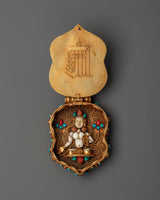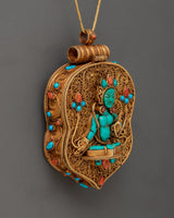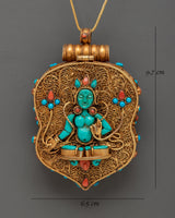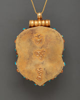 Tibetan Ghau Box Locket with Turquoise - Buddhist Deity Necklace