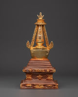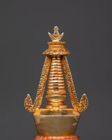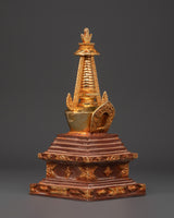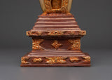 Tibetan Gold Plated Shrine | Handcrafted Oxidized Copper Buddhist Stupa