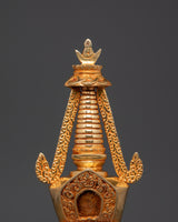 This Tibetan Stupa not only looks great in your home, but it also represents enlightenment and heavenly protection. The gold-plated layers reflect the rich spiritual legacy of Tibetan Buddhism. At the same time, the copper base provides. This shrine, weighing 2kg, is ideal for individuals who value the spiritual and meditative significance of Buddhist design. It provides both elegance and meaning. This gold-plated stupa, whether used for meditation, display, or as a revered offering, will provide profound spiritual benefits while also enhancing your tranquil atmosphere.