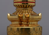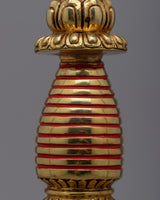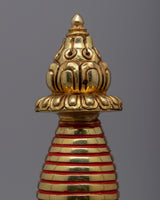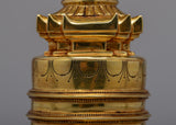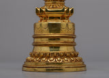 The Tibetan Golden Stupa is a meticulously handcrafted piece made mainly of copper. It is then lavishly plated in 24k gold, adding a magnificent golden shine to the stupa. This Tibetan Golden Stupa, with its intricate design and radiant golden appearance, adds a sense of grace, beauty, and spiritual significance to any space it is displayed in. It serves as a reminder of Buddhism's profound teachings and can be a source of inspiration and contemplation for both practitioners and admirers.