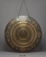 Our Tibetan Gong Meditation is a divine instrument that has been lovingly crafted from the finest bronze to enhance your meditation practice. This 60 cm-diameter gong has a profound energy resonance and is embellished with auspicious symbols and painstakingly crafted mantras.