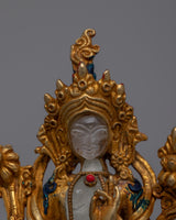Tibetan Green Tara Statue | Crafted from Crystal Stone and Copper for Radiant Harmony