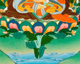 Guru Rinpoche also known as Guru Padmasambhava meaning "Lotus Essence", a symbol of spiritual perfection, peace, manifests and teaches Mandarava. Transforming negative energies into compassionate and peaceful forms.