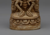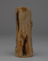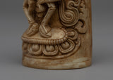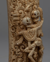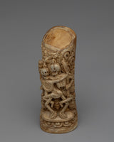 The Chitipati is hand-carved on ethically sourced buffalo bone, making it an eco-friendly and sustainable choice. The intricate details of the carving are impressive, with a high level of skill and craftsmanship evident in every line and curve. The Chitipati figure is a powerful symbol in Tibetan Buddhism, representing the ultimate triumph of life over death. It is also believed to be a protector of the practitioners of the Vajrayana path. This piece is not only a stunning work of art but also a meaningful representation of a vital aspect of Tibetan Buddhist practice.