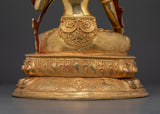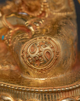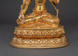 This carefully handcrafted White Tara miniature oozes celestial elegance and spiritual profundity. The statue is gilded in 24K gold, which not only adds to its visual appeal but also represents White Tara's purity and heavenly nature. The gold and acrylic paints breathe new life into the figure, emphasizing its complex intricacies and calm attitude.