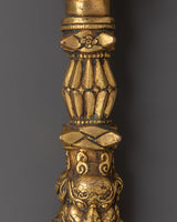 This ceremonial dagger, created by expert artisans, contains exquisite carvings of wrathful deities, serpents, and three-sided blades that reflect the transformation of negative energy into spiritual clarity. The intricate designs are not only symbolic but also represent the strength and compassion of Vajrakila, the deity responsible for eradicating spiritual impediments. The gold-plated finish heightens the ceremonial energy and visual attractiveness of this sacred artifact.