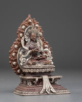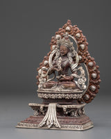 Crafted from oxidized copper and finished with silver plating, the Tibetan Handcrafted Vajrasattva Statue is a magnificent work of spiritual architecture. This statue, which stands 13 cm tall, exquisitely captures Vajrasattva, the Buddha of purity, who personifies enlightenment and cleansing. With a bell in one hand, signifying the union of wisdom and compassion, and a vajra (signifying unwavering truth) in the other, Vajrasattva is depicted sitting in a meditative position.