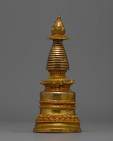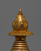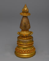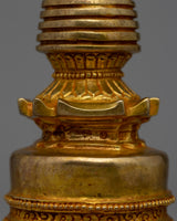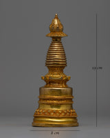This 0.53 kg stupa is great for altars, meditation nooks, or personal shrines, and it provides Buddhist protection and spiritual advancement. Its gorgeous golden hue, along with its spiritual significance, provides as a source of inspiration for those on a spiritual journey. Whether placed in a home or a sacred space, this stupa serves as a reminder of the Buddha's timeless teachings and the pathway to inner peace and enlightenment.