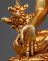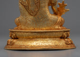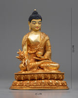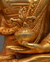 We have used the machine to carve the entire copper body of the mini Medicine Buddha statue and gilded it with genuine 24k gold. We have also gilded the face with gold and others are plated. We are the artist of Kathmandu valley whose artisan has passed from generation to generation, reflecting Buddhism. We have depicted Lapis Lazuli seated atop a moon disc lotus seat, holding medicinal herb in his right hand and a bowl in his left hand, respectively. This art of Himalayan will be a tremendous indoor gift from Nepal to a practitioner like you.