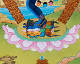 Admire the incomparable splendor of our Hevajra Thangka, a masterpiece of spirituality that perfectly captures the spirit of Tibetan Buddhism. This exquisitely painted thangka transports you to the heavenly world of Vajrayana Buddhism. It was made on strong cotton canvas using a vivid acrylic color palette and genuine 24K gold detailing. The angry god Hevajra is portrayed dynamically and aggressively, signifying the alchemical conversion of negativity into wisdom. This thangka is a meticulously made piece that adheres to old iconography and is in the revered Karma Gadri style, which is well-known for its fine craftsmanship. This spiritual masterpiece will last for a long time because of the strong foundation provided by the Cotton Canvas. Immersing yourself in the Hevajra Thangka's vibrant colors, complex patterns, and heavenly symbolism elevates it above mere artwork.