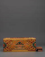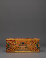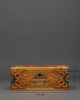 This Tibetan Home Decor Tissue Box will add the elegance of Himalayan workmanship to your home area. This rectangular tissue holder is handcrafted from high-quality wood and embellished with brilliant acrylic colors, reflecting traditional Tibetan design. It measures 10.5cm in height, 26cm in width, and 15.5cm in side width, making it both functional and visually beautiful. Its exquisite gold-lined design and symbolic floral motifs make it an ideal centerpiece for any living room, office, or meditation area.