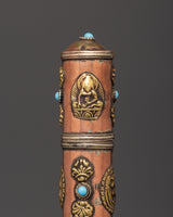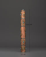 Immerse yourself in the peaceful surroundings of our Tibetan Incense Holder with Turquoise, an excellent combination of tradition and creativity. This handcrafted piece has stunning turquoise inlays and delicate brass designs, making it a lovely addition to any meditation room or spiritual shrine. This incense holder, 29.5 cm tall and 3.5 cm broad, is lightweight (0.12 kg), making it easy to set and use on many occasions.