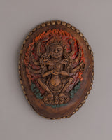 The skull cup, or Kapala, is a ritual offering cup used in esoteric tantric rituals. When performing ritualistic practices, Kapala is filled with nectars for performing higher esoteric rituals during tantric meditation to achieve a transcendental state of thoughts.