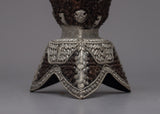 The Kapala Skull is a common symbol in rituals and ceremonies that represents the transmutation of bad energy and the transience of existence. It is an effective tool for spiritual practitioners. It is an important addition to any sacred location or collection because of its intricate craftsmanship and symbolic design. This piece is treasured for both religious and artistic appreciation because of its deep cultural and spiritual connection, in addition to its aesthetic appeal.