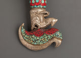 This Tibetan ceremonial knife is intended to elicit deep spiritual energy and is ideal for use in meditation, spiritual rituals, or as a collection of Tibetan item. Its distinctive design and hefty materials give it a commanding presence in any setting, and it demonstrates the craftsmanship of Tibetan artisans. Enhance your spiritual journey with this Tibetan Kartika Flaying Knife, embellished with turquoise and coral, which provides protection and clarity as you discover the mysteries of Tibetan ritual.