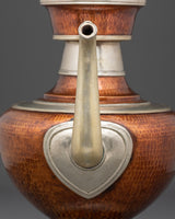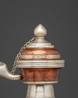 Bring a piece of Tibetan tradition into your space with this Handmade Tibetan Kettle, expertly crafted from copper and elegantly silver-plated for a finish. Standing 39.5 cm tall, this kettle is ideal for tea ceremonies, spiritual rituals, or as a distinctive decorative element that enriches your environment. The harmonious blend of copper and silver not only offers an ancient, refined aesthetic but also symbolizes purification and the flow of positive energy. Whether used in sacred practices or displayed as a meaningful accent, this kettle invites tranquility, cultural depth, and spiritual balance into your home.