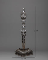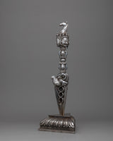 Every component of the phurba has been meticulously designed to uphold custom and inspire reverence. Every element, including the pointed blade and the exquisitely carved handle, represents the transformational force of compassion and knowledge. This phurba, which is supported by an iron stand, is a powerful representation of the search of enlightenment and spiritual perseverance. Its weight of 3.382 kg gives it a tangible presence that encourages people to be mindful and reflect. Set out on a journey of spiritual awareness and protection by feeling the profound energy of the Tibetan Kila Phurba Dagger.