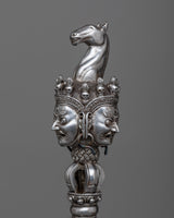 With our painstakingly wrought iron Tibetan Kila Phurba Dagger, set off on a spiritual exploration voyage. With its elaborate carvings and symbolic meaning, this ceremonial dagger—highly esteemed in Tibetan Buddhism—invites you to explore the limits of spiritual protection and wisdom. With its impressive dimensions of 43 cm in height and 17 cm in breadth, the dagger's intricate craftsmanship makes it a remarkable focal point for any altar or sacred area.