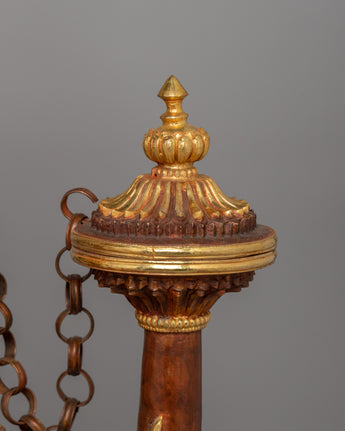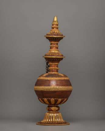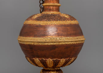 In Tibetan Buddhism and Hinduism, the Kundika is a venerated ritual object representing purity, wisdom, and endless blessings. Traditionally used in rituals to pour sacred water as an offering to deities and spiritual practitioners, this kundika's elaborate design and gold accents add to its holy significance. This pitcher exudes spiritual devotion and heavenly energy, whether displayed in a Buddhist temple, monastery, or personal meditation room.