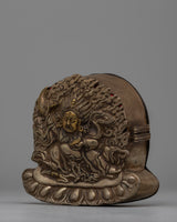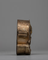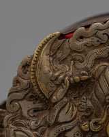 This Ghau Box, weighing 0.58 kg, is both significant and portable, making it ideal for adopting into various spiritual rituals or presenting at home. It is a potent reminder of Mahakala's ensuring qualities, promoting mindfulness and inner peace. Whether employed as a meditation tool, a decorative object, or an auspicious storage box, the Tibetan Mahakala Ghau Box symbolizes Tibetan Buddhism's timeless appeal and spiritual wisdom, making it an exclusive possession for both collectors and practitioners.