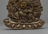 Ghau boxes, which initially were utilized for preserving precious artifacts including mantras, relics, and miniature form sculptures, are respected for their significance in meditation and spiritual practices. The Mahakala Ghau Box is intended to keep these precious valuables protected and secured. The box's elaborate carvings highlight major symbols and patterns linked with Mahakala, adding to its spiritual value. The use of silver and gold not only increases its aesthetic appeal, but also represents purity and divine protection, making it a valuable addition to any altar or individual collection.