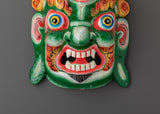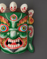 This handcrafted Tibetan Mahakala mask is perfect for altars, meditation rooms, yoga studios, or as a unique piece of home décor. It incorporates traditional Himalayan workmanship and spiritual meaning. Its vibrant green color indicates dynamic protective energy, making it a great spiritual wall art item to boost your home's positive energies.