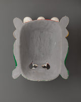 Enhance your spiritual space with this powerful Tibetan Mahakala Wall Hanging, a handcrafted protector deity mask renowned for repelling negativity and safeguarding sacred places. This compact yet striking work, measuring 31 cm in height by 26.5 cm in width and weighing 0.77 kg, is carved from wood and hand-painted with brilliant acrylic colors. The furious countenance, bulging eyes, blazing brows, and skull crown represent Mahakala's position as a protector of wisdom and remover of barriers.