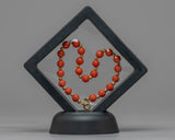 This Tibetan Mala Beads set is meticulously handmade, showcasing the skilled craftsmanship of the artisans. The mala beads, traditionally used for meditation and prayer, are carefully strung together, forming a continuous loop. Each bead is crafted with precision and made from high-quality materials, ensuring durability and smoothness when used for counting mantras or affirmations. The mala beads are thoughtfully enclosed within a frame, allowing them to be easily held and used during spiritual practices. This exquisite piece serves as a reminder of mindfulness and devotion, offering a tangible tool for deepening one's spiritual journey.