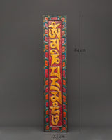 Enhance your spiritual journey with this Tibetan mantra wall hanging, representing Himalayan artistry. Whether exhibited on a living room wall, in a meditation space, or as part of a sacred shrine, it exudes positive energy and serves as a reminder to cultivate mindfulness. This unique wooden mantra plaque is also a great present for anyone who enjoys Buddhist decor or wants to add a touch of spiritual importance to their home. Elevate your decor with this hand-painted wooden mantra wall art, promoting peace and tranquility.