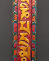Vibrant Tibetan Mantra Wall Hanging | Hand-Painted Wooden Plaque for Spiritual Spaces