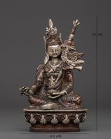 Silver-Plated Tibetan Master Guru Rinpoche Figurine in Oxidized Copper