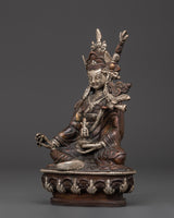 This silver-plated Guru Rinpoche statue embodies profound Vajrayana teachings, bestowing the benefits of insight, protection, and spiritual awakening. This figure is ideal for serious practitioners, Tibetan Buddhists, and collectors of Himalayan ritual art, exuding reverence and authenticity. Whether employed for meditation, ritual, or as holy décor, this Tibetan master figurine in oxidized copper serves as a source of spiritual direction and power. Keywords such as "Guru Rinpoche statue," "Padmasambhava figure," "Vajrayana altar décor," and "Himalayan spiritual art" help increase search exposure for this precious object.